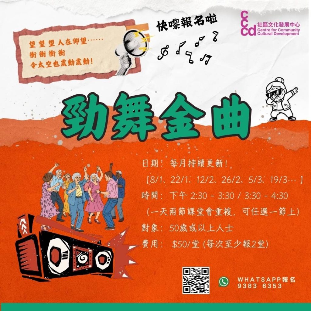 🎉 歡迎來到*《勁舞金曲》*節目,這是一個專為50歲或以上的您設計的街舞班!在懷舊金曲的旋律中,我們將帶您體驗多元的街舞風格,讓身體隨音樂自由舞動,重拾青春的快樂!結合了多首經典歌曲的「金曲大雜燴」。