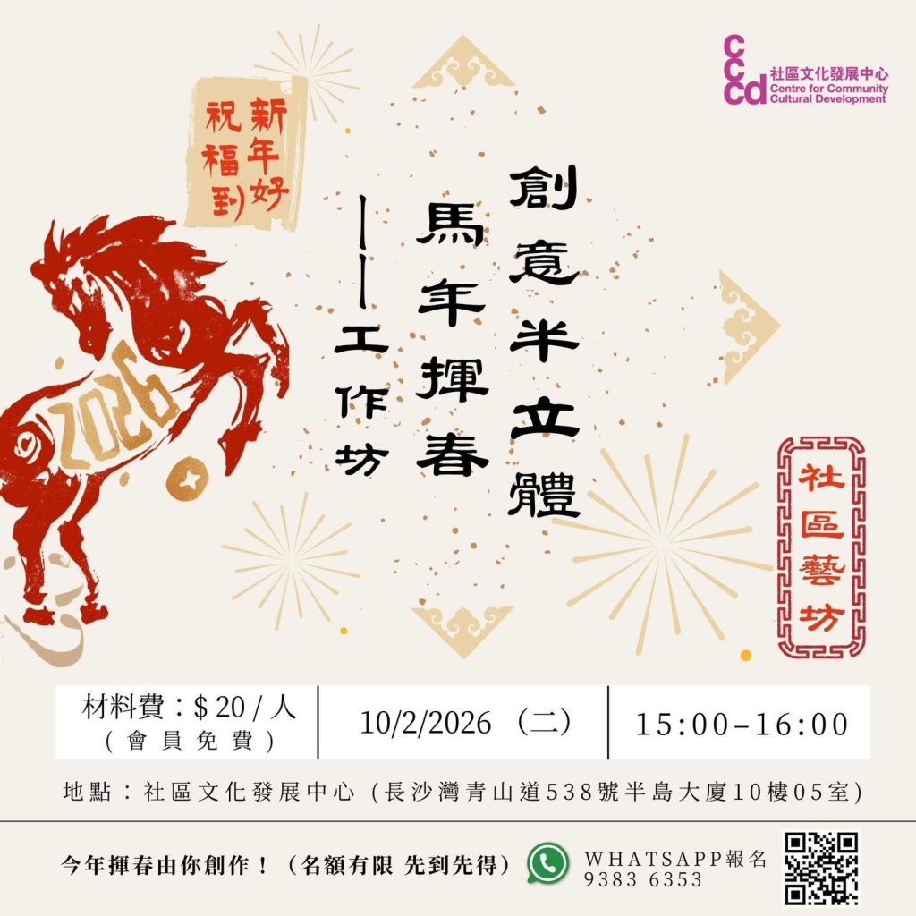 🌟 創作過程將由導師指導,讓您輕鬆學習如何製作半立體馬年揮春,不論是送給家人或朋友,都是一份用心的祝福! ✨
